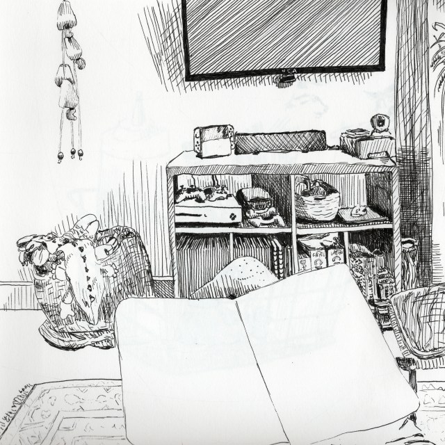 “Play Clothes”, 8×8″, gouache on watercolor paper