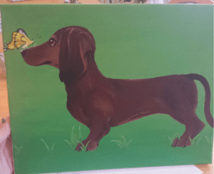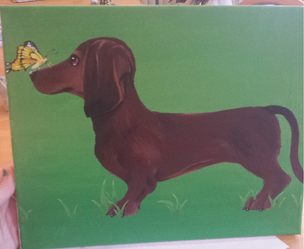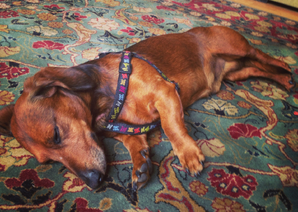 My cousin Avery has an adorable Daschund named Sam. This is Sam lounging on a fancy rug: