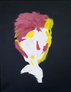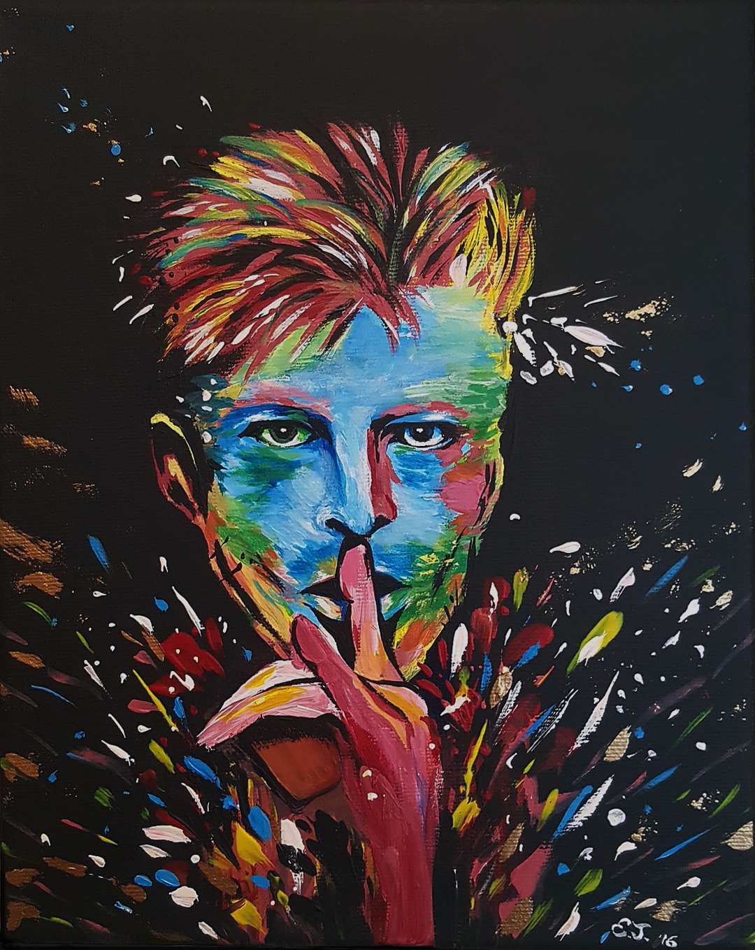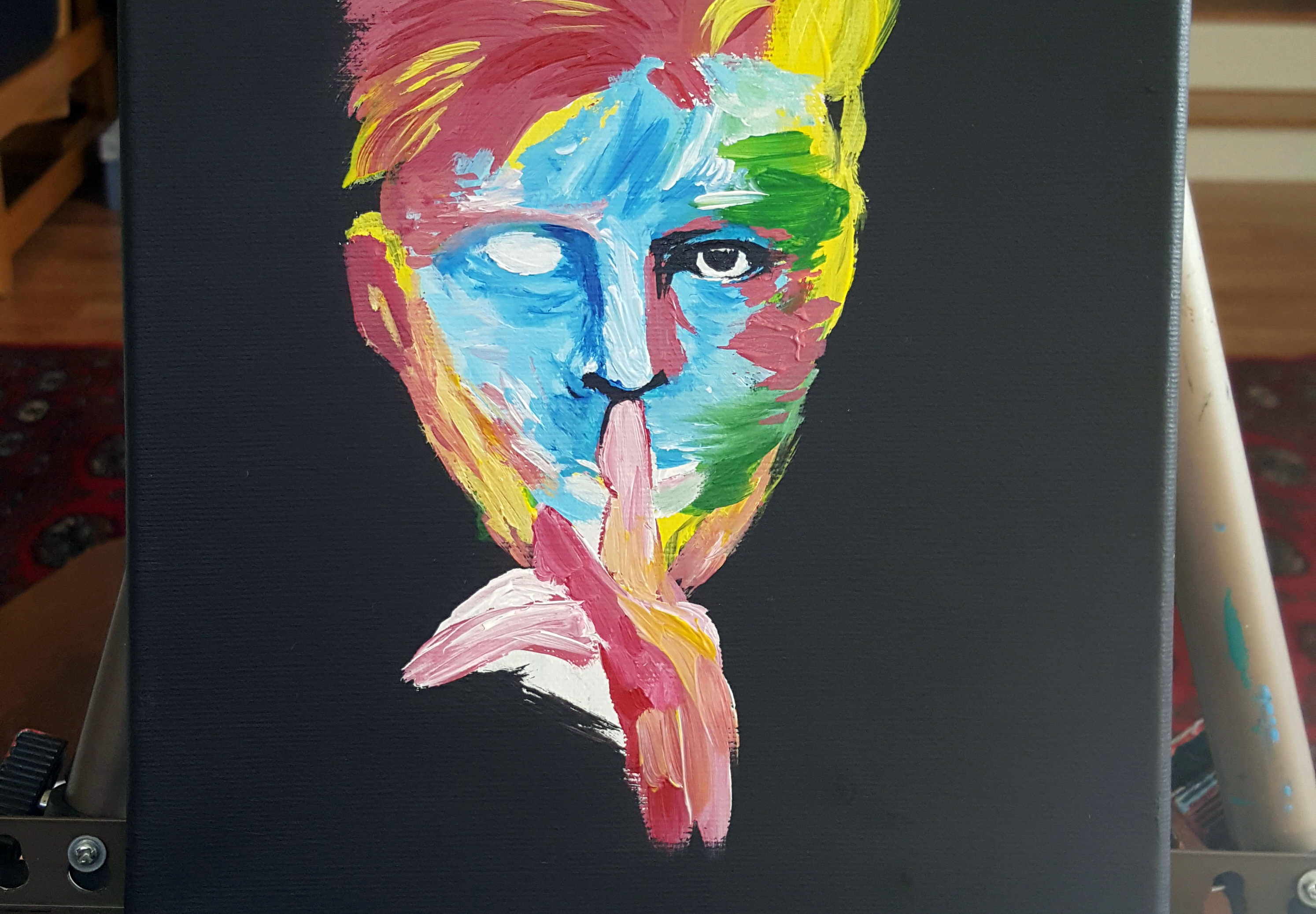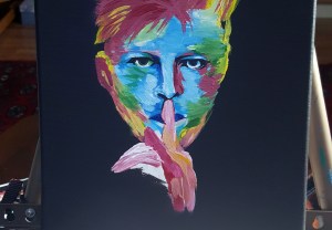 This is a commission for a friend. She requested a portrait of David Bowie, based on a Google image. I added some gold and put my own spin on it. Keep scrolling to see progress images!