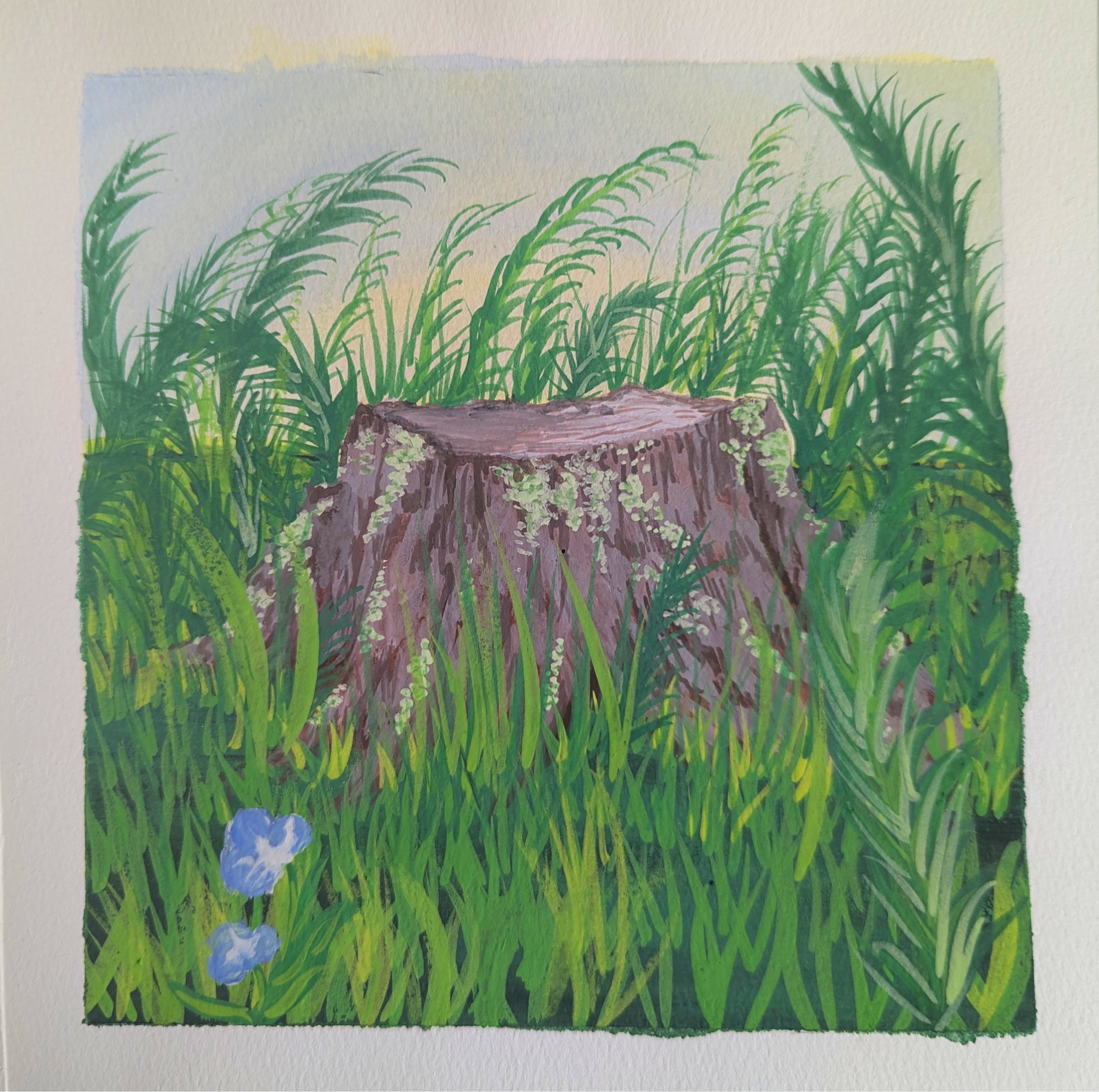 I’ve been enjoying observing tree stumps lately, especially when they’re surrounded by overgrowth. Anytime I run into one, I try to take a few minutes to sketch it.