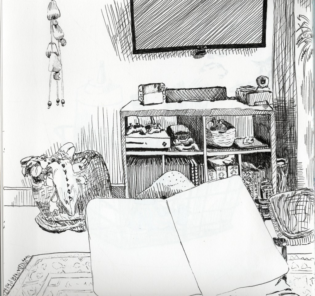 Drawing exactly what’s in front of me has been a fun exercise in achieving perspective, and my tiny living space is a great testing ground for this kind of drawing. Analyzing it now, I see so many improvements that would be possible here, but I really enjoyed the process.