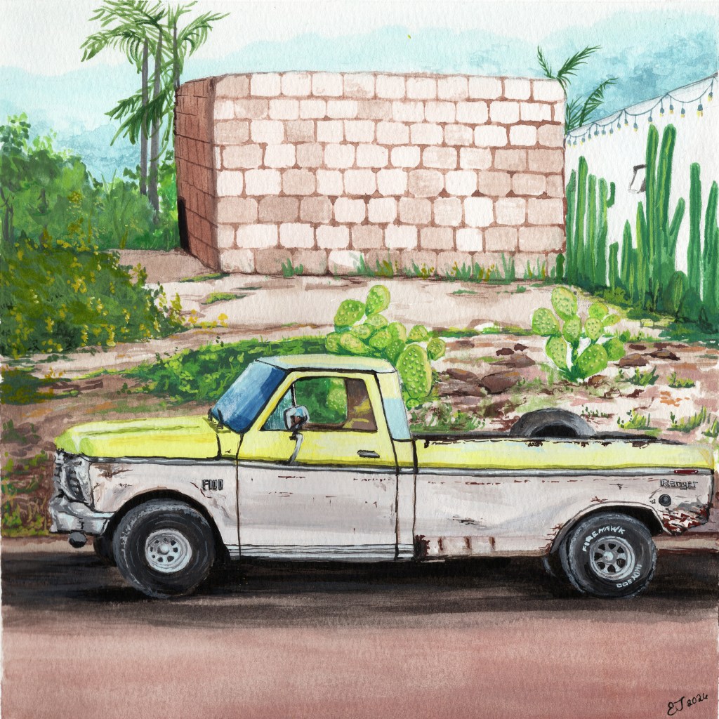 Ever since I started learning about old cars and restoration, I notice old cars and trucks everywhere. I spotted this chartreuse F-100 in Mexico.